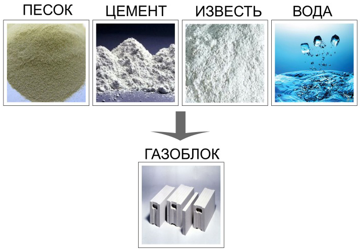 При производстве газобетонных блоков основным компонентом является цемент, кроме него в них содержатся: